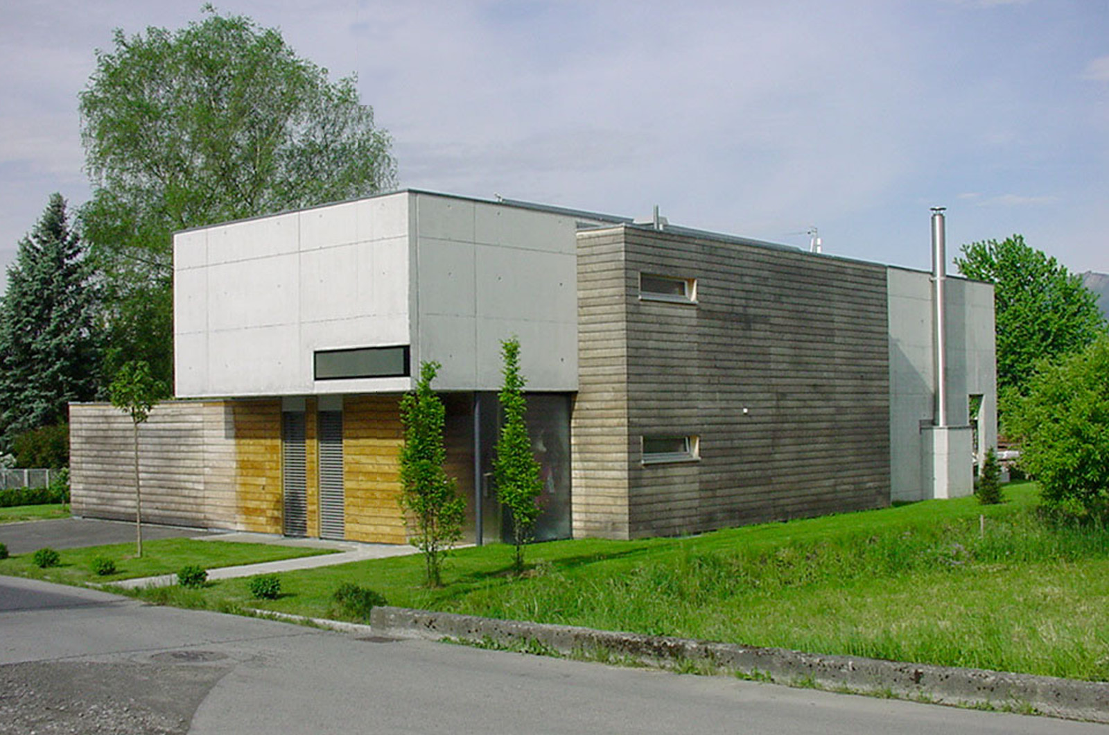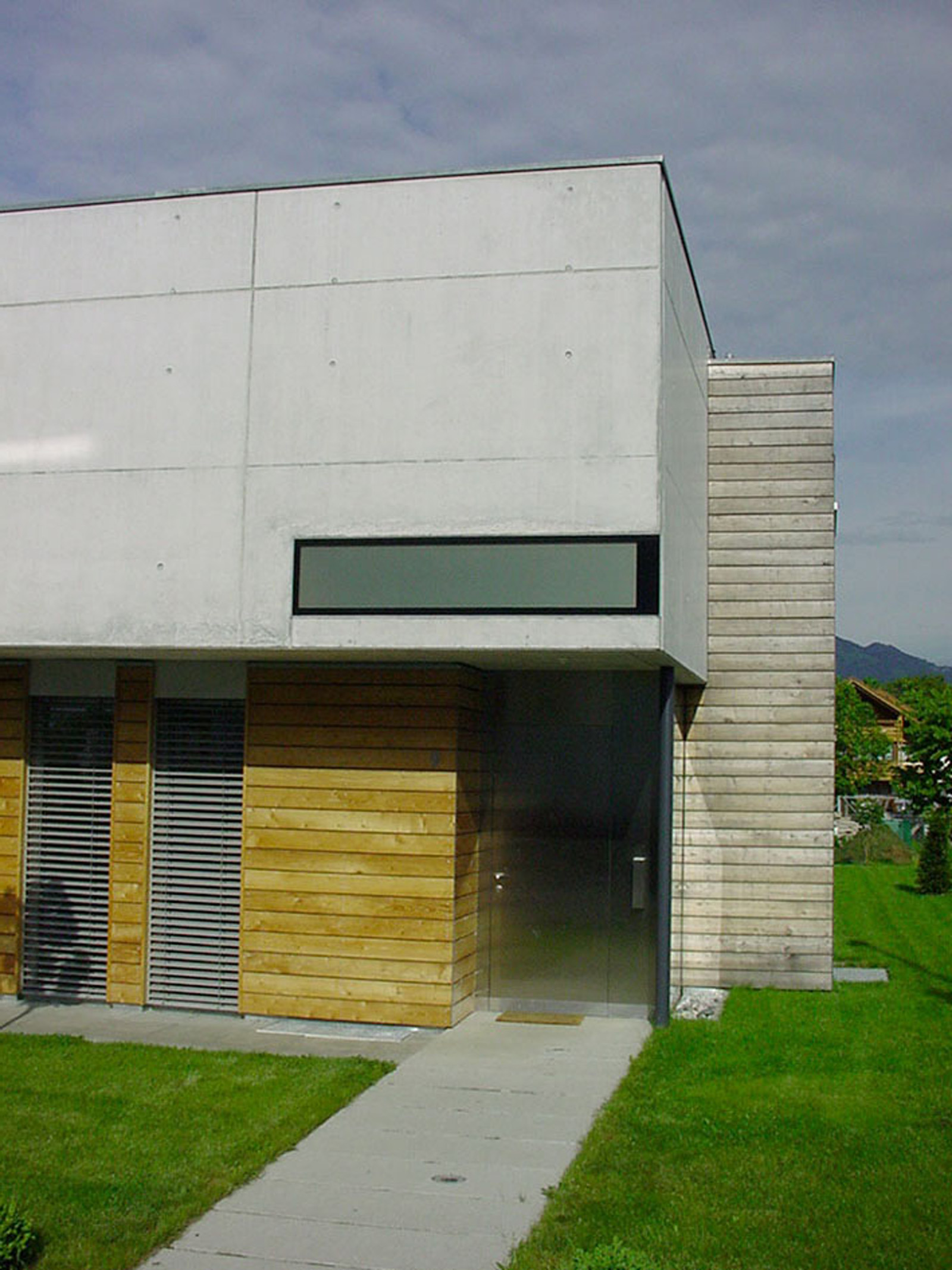 Das Haus ist der Versuch einer Neuinterpretation des klassischen lang gestreckten Bauernhauses des Vorarlberger Rheintals. Ähnlich dem „Vorbild“, bei dem im Lauf der Jahre zusätzliche Raumbedürfnisse durch das Anbauen einfacher Holzschuppen abgedeckt wurden, wurde auch bei diesem Projekt versucht, die primären Funktionen in einem klaren Baukörper zu organisieren, und die zusätzlichen Funktionen in angedockten Holzboxen zu integrieren. Durch diese Maßnahme entsteht gleichzeitig eine Zonierung des Außenraums und damit eine klare Trennung von privat zu öffentlich.