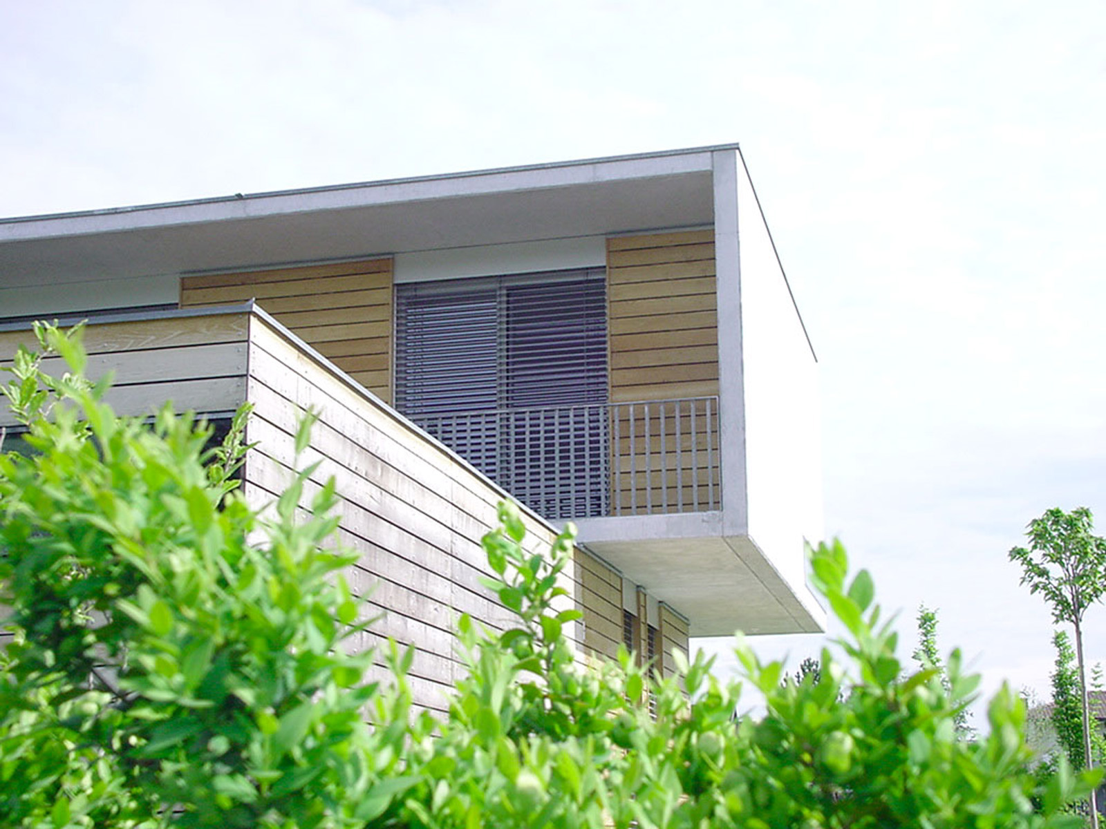 Das Haus ist als Massivbau konzipiert, die Fassaden des Hauptbaukörpers sind in Sichtbeton aufgeführt, die angedockten Boxen sind mit Akazienholz verkleidet.